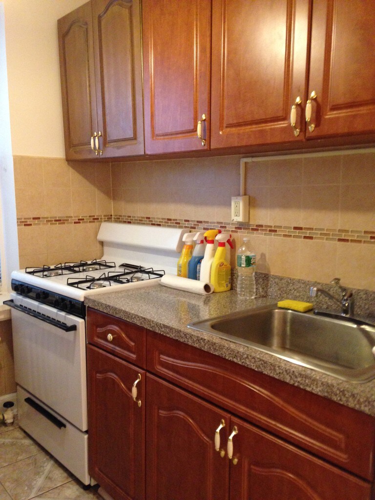 First floor walk in of three family home on a quiet street in Jackson Heights heat & hot water included private entrance recessed high hat lighting full size oven and full size fridge bedroom fits a full set a furniture queen 3 closets ceramic tiles in kitchen, hardwood floors in living room