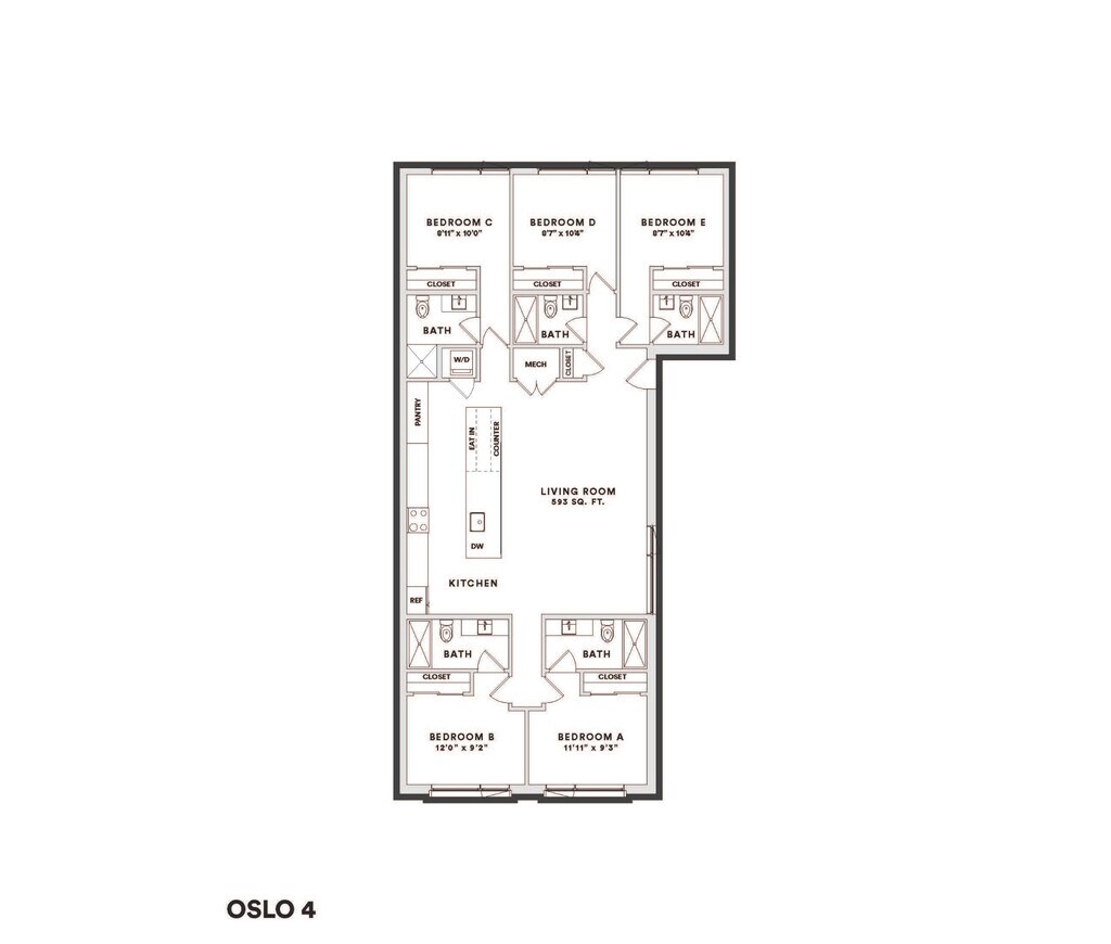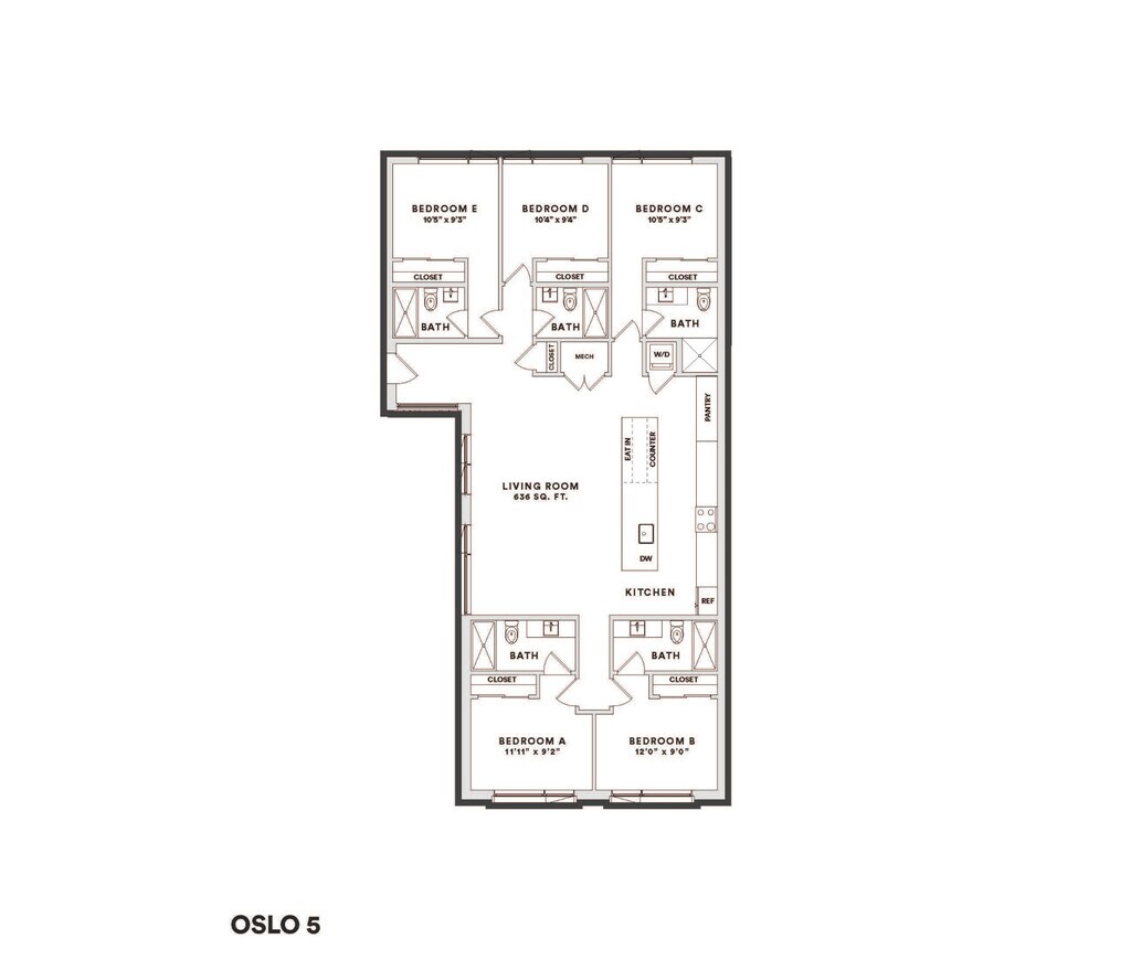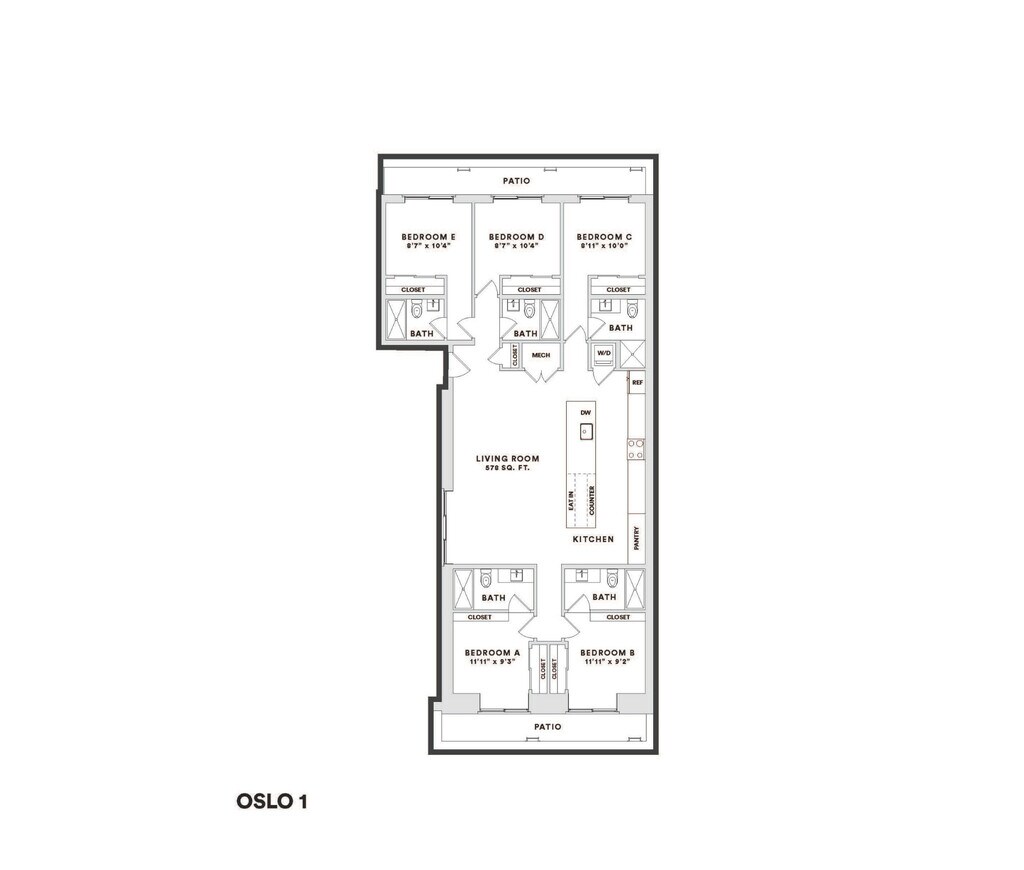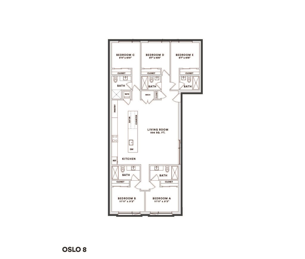 Apartment Model: OSLOatlas | 5 Person Suite | Shared BathFrom $1,2491 Bedroom, 1 Bath, 100 sq ftAvailable NowFloor plans are artist's rendering. All dimensions are approximate. Actual product and specifications may vary in dimension or detail. Not all features are available in every rental home. Please see a representative for details.