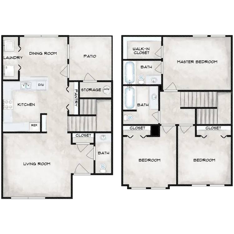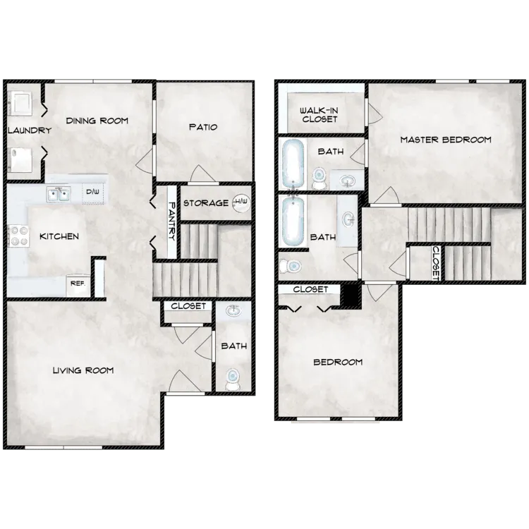 2 Beds, 2.5 Baths, 1079 sq ftModel Gallery