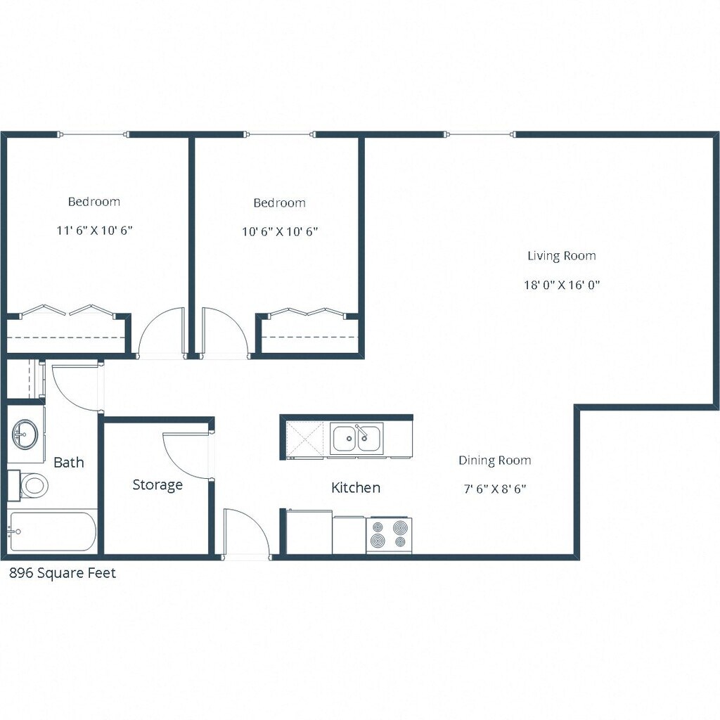 Apartment Model: Two Bedroom 21BFrom $7002 Bedroom, 1 Bath, 896 sq ftUnavailable![]()
