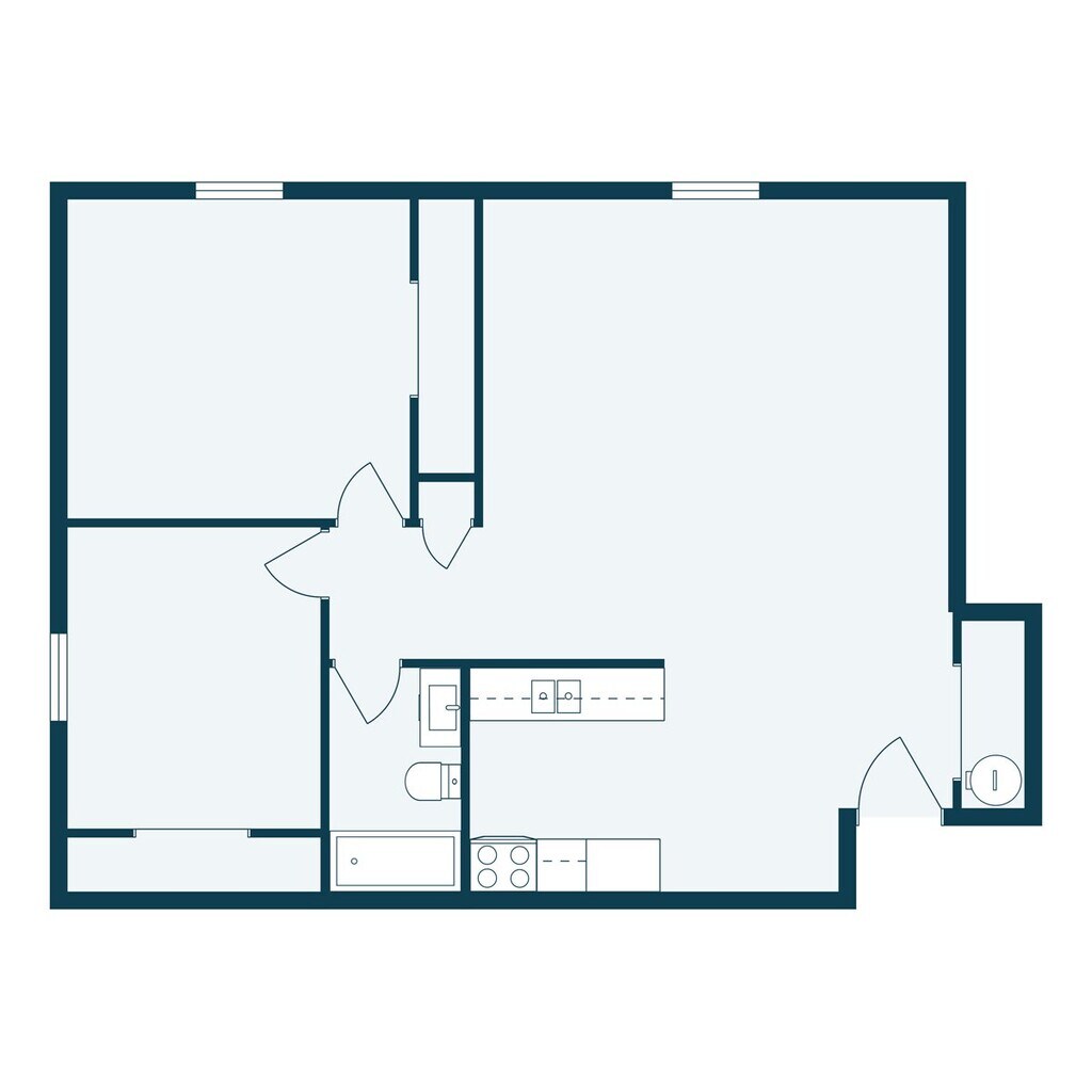 One Bedroom 11B - Floorplan 2 Apartment Unit: 01-303Apartment Model: One Bedroom 11B$7151 Bedroom, 1 Bath, 600 sq ftAvailable January 1, 20262 Bedrooms