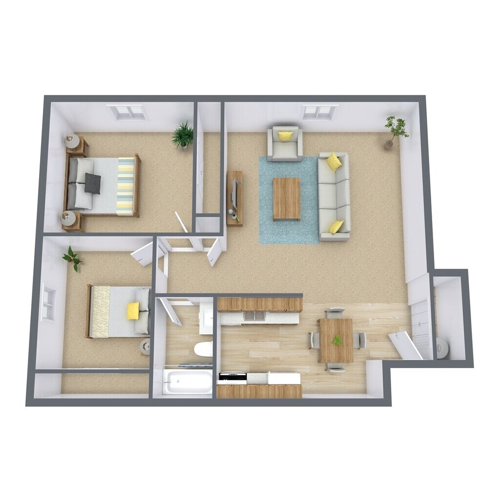 Apartment Model: Two Bedroom 21DFrom $7002 Bedroom, 1 Bath, 934 sq ftAvailable Now![]()