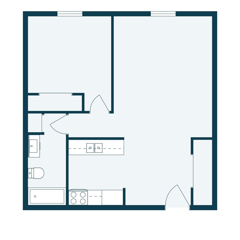 One Bedroom 11A - Floorplan 2 Apartment Unit: 02-103Apartment Model: One Bedroom 11A$6851 Bedroom, 1 Bath, 600 sq ftAvailable January 1, 2026One Bedroom 11B