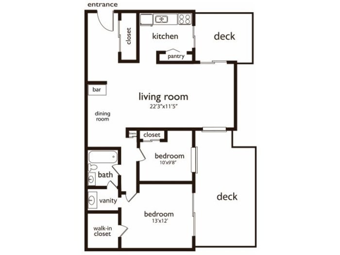 2 Beds, 1 Bath, 960 sq ftAvailable NowModel Gallery