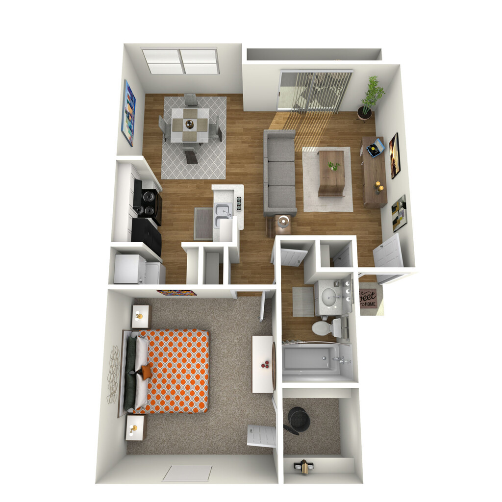 Apartment Model: A1From $7291 Bedroom, 1 Bath, 690 sq ftAvailable NowFloorplansPhotos![]()