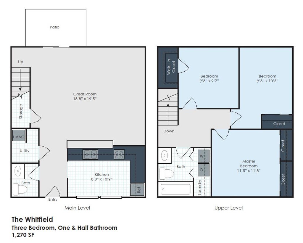3 Beds, 1.5 Baths, 1270 sq ftAvailable NowModel Gallery