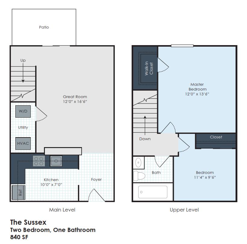 Apartment Model: The-Sussex$1,0502 Bedroom, 1 Bath, 840 sq ftAvailable Now![]()