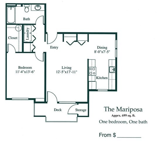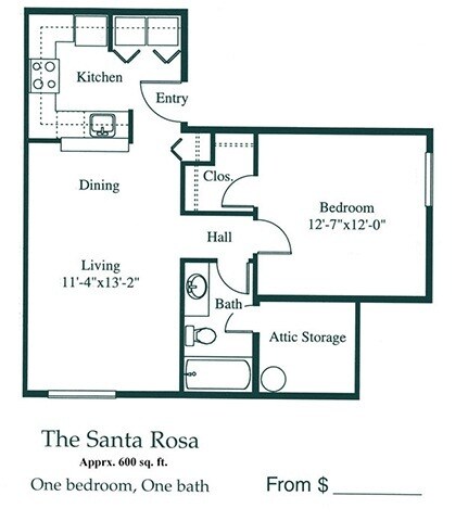 1 Bedroom, 1 Bath - Floorplan 11 Santa Rosa