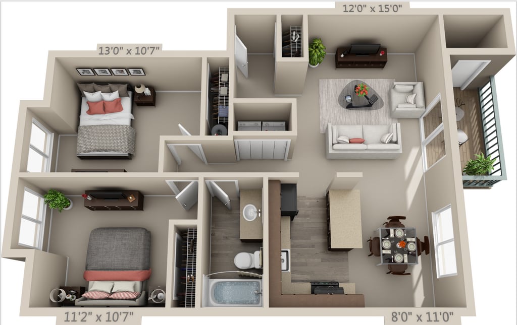 Apartment Model: 2x2aFrom $1,9102 Bedroom, 2 Bath, 966 sq ftAvailable Now![]()