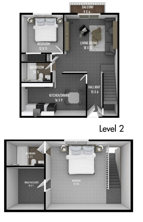 2 Beds, 2 Baths, 1050 sq ftModel Gallery
