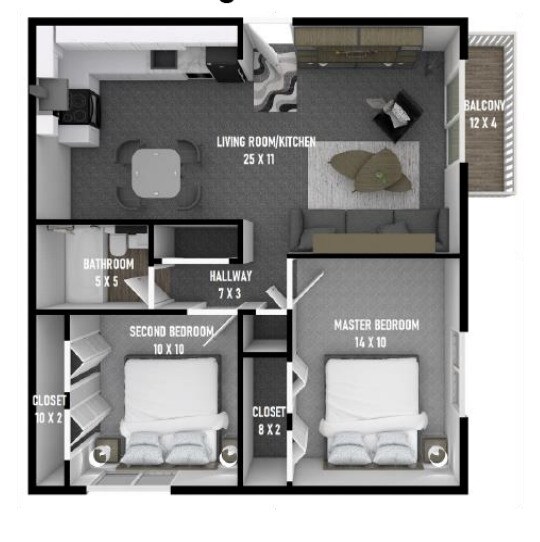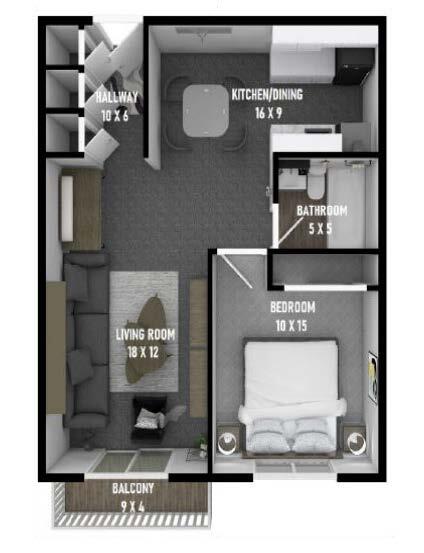 1 Bed, 1 Bath, 700-750 sq ftAvailable NowModel Gallery