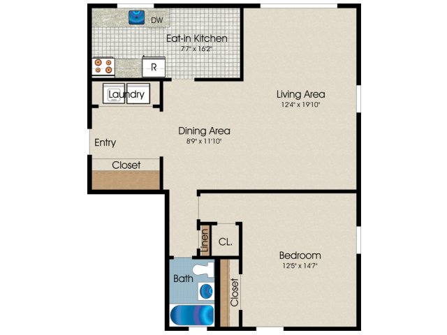 1 Bedroom, 1 Bath 880 sq. ft. - Floorplan 8 ![]()