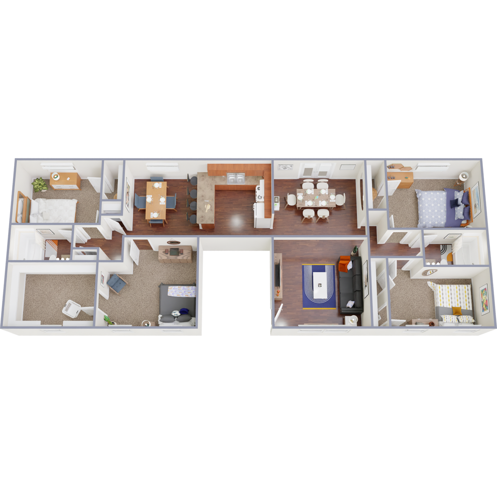 4 Beds, 2 Baths, 1067 sq ftModel Gallery