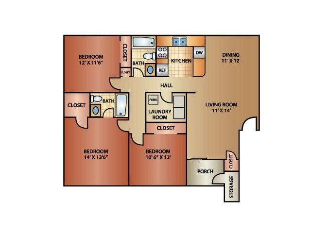 3 Beds, 2 Baths, 1364 sq ftAvailable NowModel Gallery
