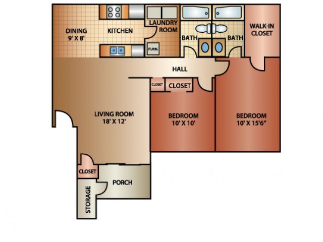 Apartment Model: OakFrom $1,3802 Bedroom, 2 Bath, 1072 sq ftAvailable Now![]()