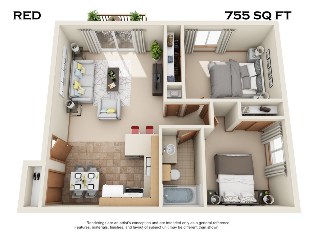 2 Beds, 1 Bath, 755 sq ftAvailability Details