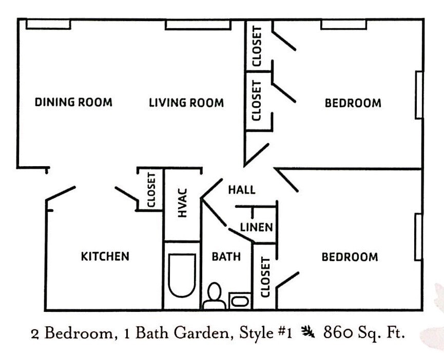 2 Beds, 1 Bath, 860 sq ftModel Gallery