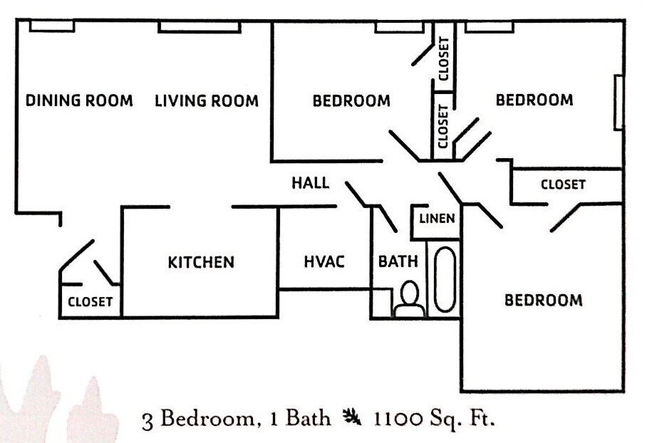Availability Date Unit Sq Ft Unavailable 3 Bedroom 1100 sq ft Apartment Model: 3 Bedroom3 Bedroom, 1 Bath, 1100 sq ftUnavailable![]()