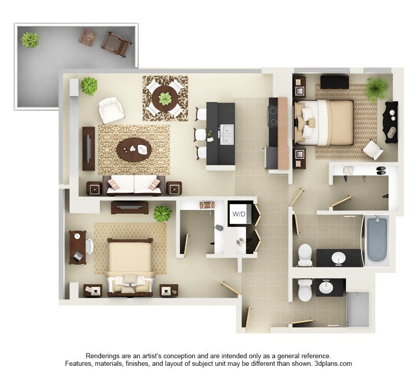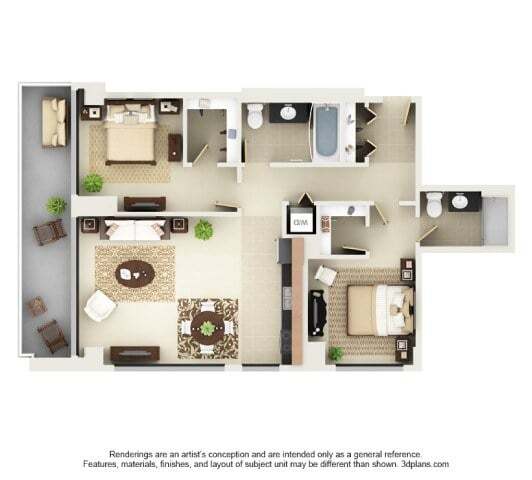 Apartment Model: B6Call For Rates2 Bedroom, 2 Bath, 1204 sq ftUnavailable![]() - B6 - Floorplan 1