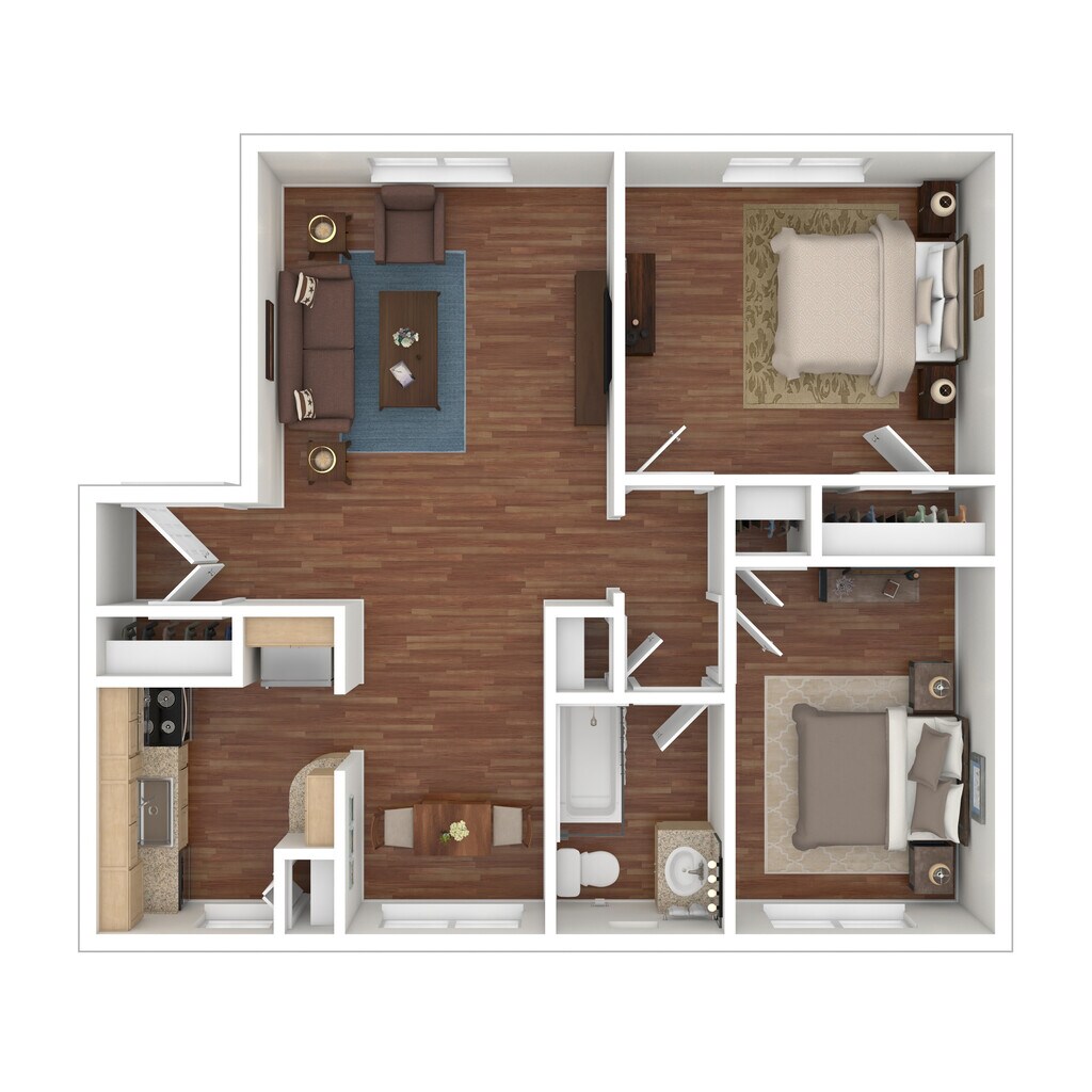 2 Beds, 1 Bath, 702 sq ftAvailable NowLargest 2 BedroomThis is the largest 2 Bedroom at this PropertyModel Gallery