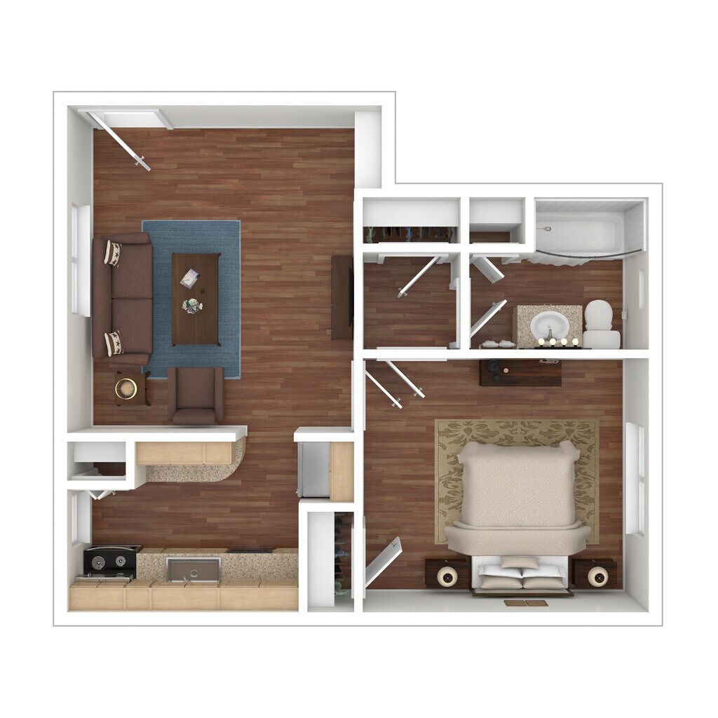 1 Bed, 1 Bath, 540 sq ftAvailable NowLargest 1 BedroomThis is the largest 1 Bedroom at this PropertyModel Gallery