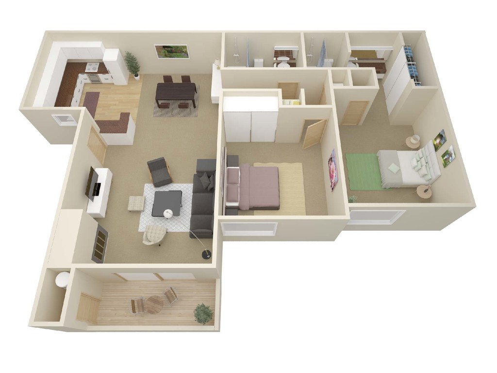 2 Beds, 1 Bath, 821 sq ftModel Gallery