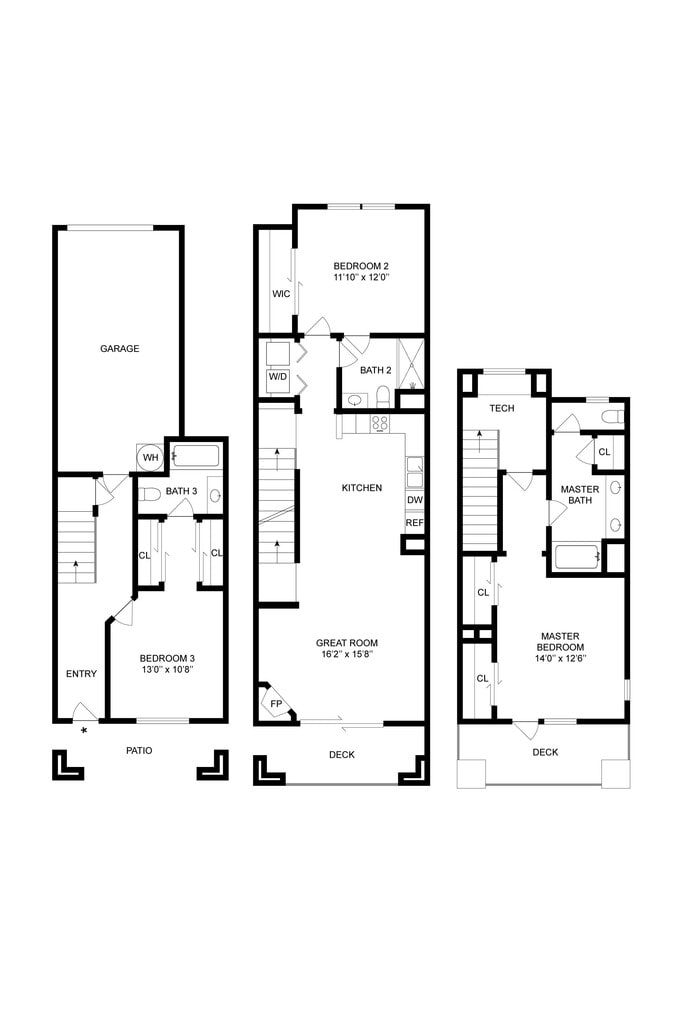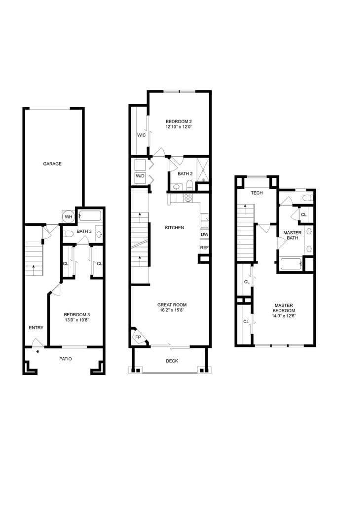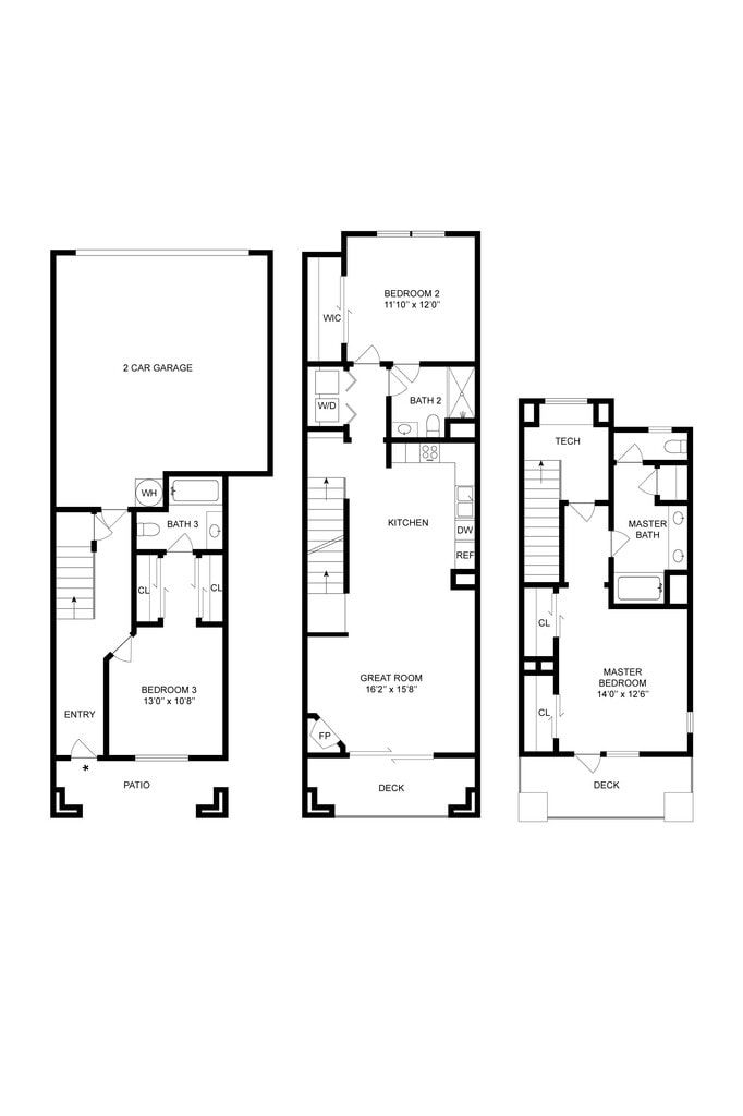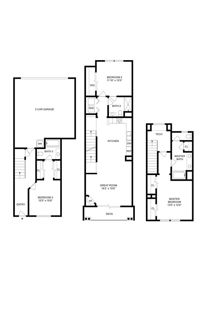 - Townhomes with direct access garages