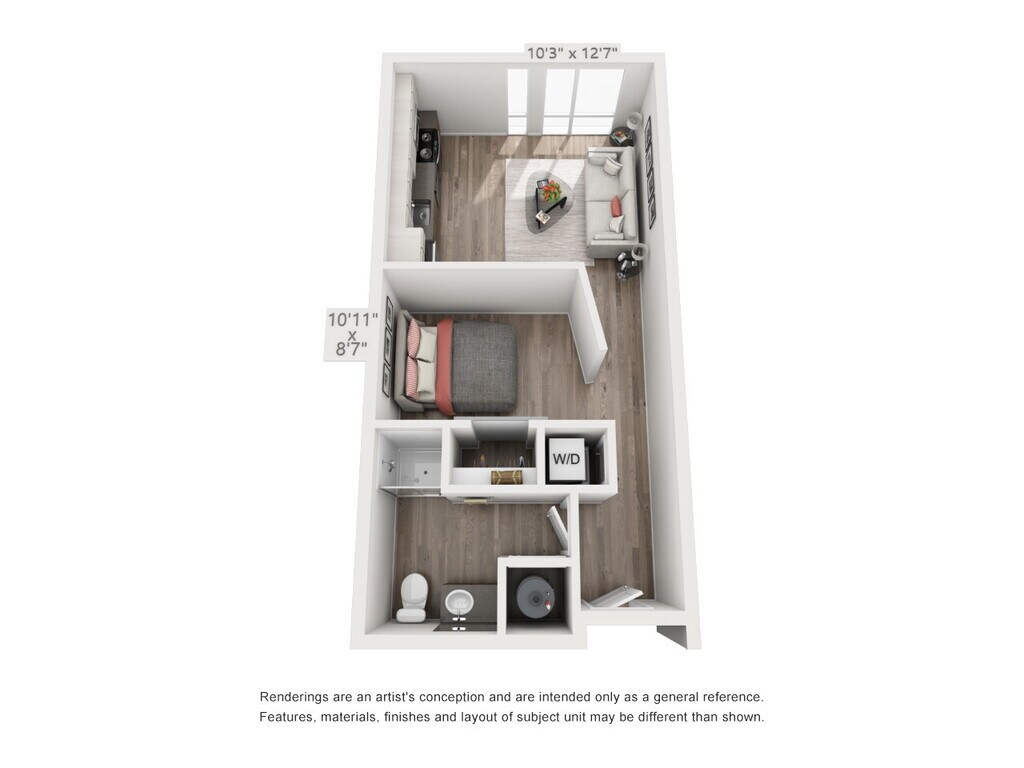Apartment Model: S1From $1,385Studio, 1 Bath, 467 sq ftAvailable NowFloor plans are artist's rendering. All dimensions are approximate. Actual product and specifications may vary in dimension or detail. Not all features are available in every rental home. Prices and availability are subject to change. Base rent is based on monthly frequency. Additional fees may apply, such as but not limited to package delivery, trash, water, amenities, etc. Deposits vary. Please see a representative for details.