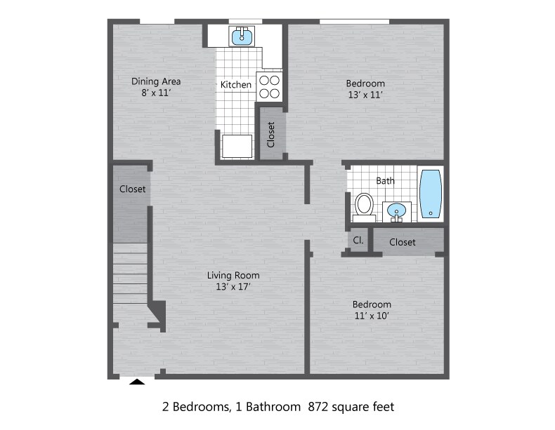 2 Beds, 1 Bath, 890 sq ftModel Gallery