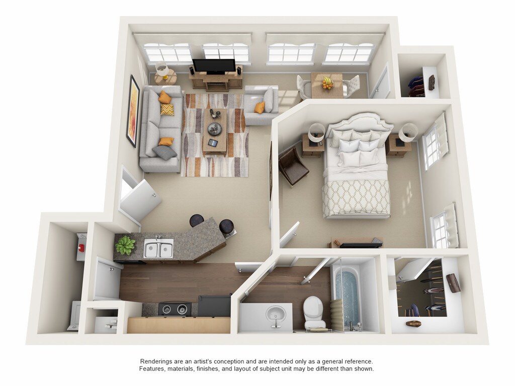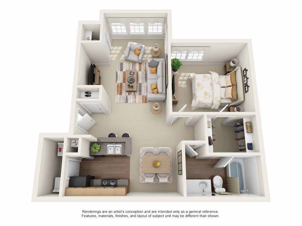 1 Bed, 1 Bath, 610 sq ftAvailable NowModel Gallery