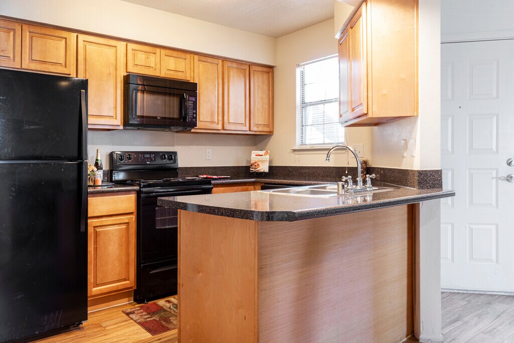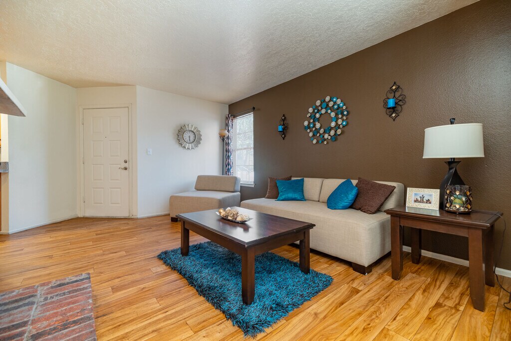 Experience distinctive, lavish living at Oak Tree Apartments in Del Norte, Albuquerque. Our luxury apartment community features one and two bedroom floor plans, exceptional amenities, and top-notch services. We spare no expense to ensure that your home at our pet-friendly community provides everything you need and more. Enjoy a distinct, spacious one or two bedroom apartment home featuring optional granite-inspired countertops, black Whirlpool appliances, contemporary brushed nickel lighting and fixtures, 9-foot ceilings, spacious closets, ceiling fans, and full-size washers and dryers. In select apartments, you'll also find charming fireplaces, walk-in closets, vaulted ceilings, and skylights. When it's time to unwind, play a few games of tennis, or cool off with a dip in one of our three swimming pools, relax in a hot tub, or get your workout in at our fitness center. Whatever you desire, Oak Tree Park apartments has something to offer for everyone. If you’re looking for an apartment in Del Norte, Albuquerque, the beauty, five-star amenities, and the convenience of Oak Tree Park apartments will make you happy to call our apartments your new home. Visit us soon and see why Oak Tree Park in Northeast Albuquerque, NM is a hidden gem in the middle of it all.