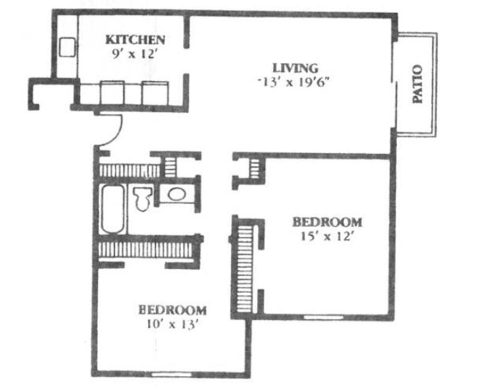 Apartment Model: 2 Bed, 1 Bath$9502 Bedroom, 1 Bath, 912 sq ftUnavailable![]()