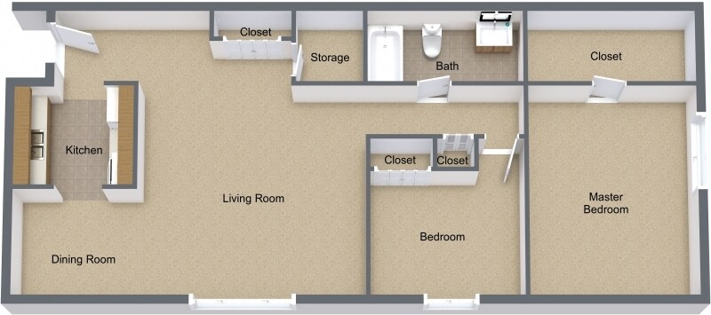 2 Beds, 1 Bath, 608-900 sq ftAvailable NowModel Gallery