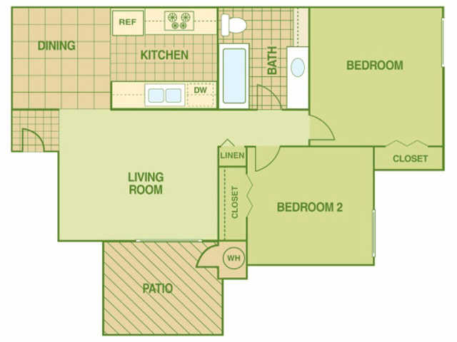 Apartment Model: 2 Bedroom 1 BathroomFrom $1,6342 Bedroom, 1 Bath, 768 sq ftAvailable Now![]()