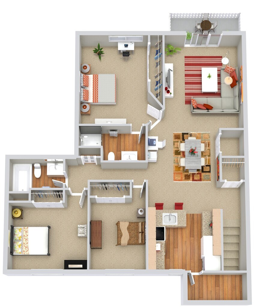 Apartment Model: 3 Bed | 2 Bath UpperCall For Rates3 Bedroom, 2 Bath, 1235 sq ftUnavailable![]()
