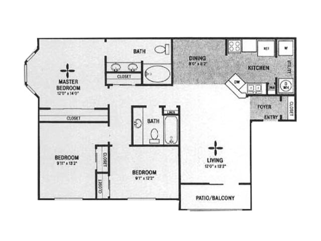 Apartment Model: 3x23 Bedroom, 2 Bath, 1164-1225 sq ftUnavailable![]()