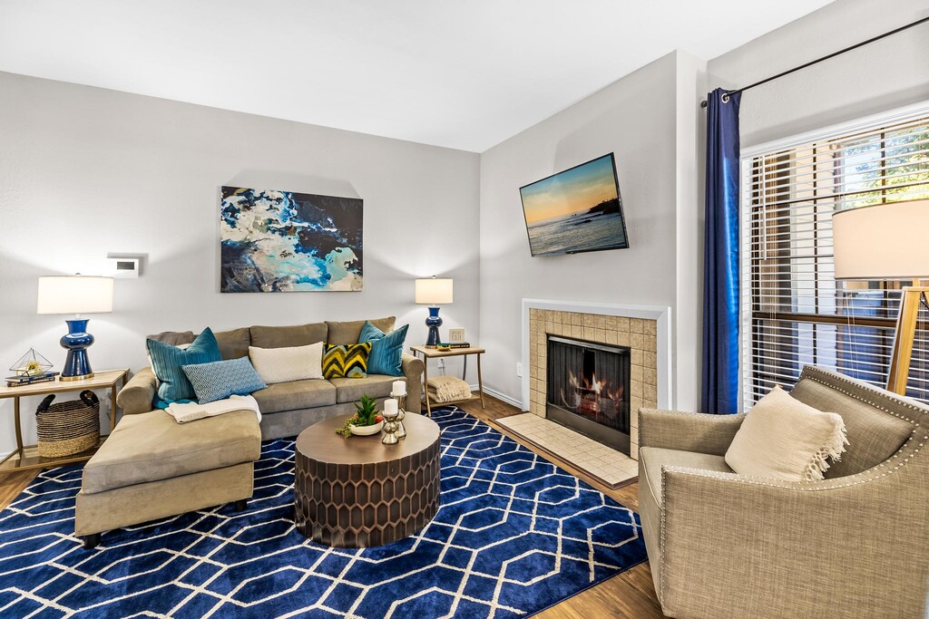 - Large open living rooms with fireplace