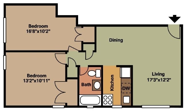 1 Bedroom - Floorplan 7 2 Bedrooms