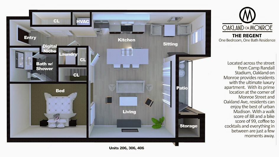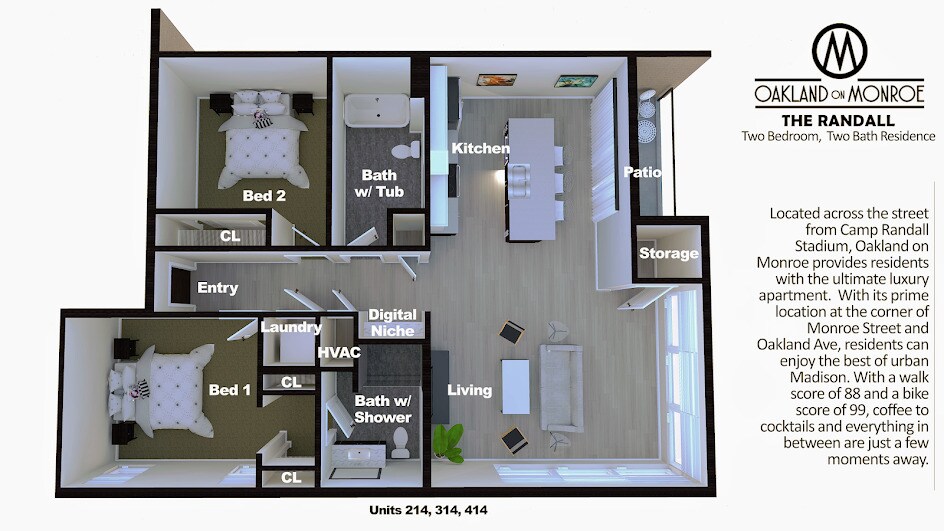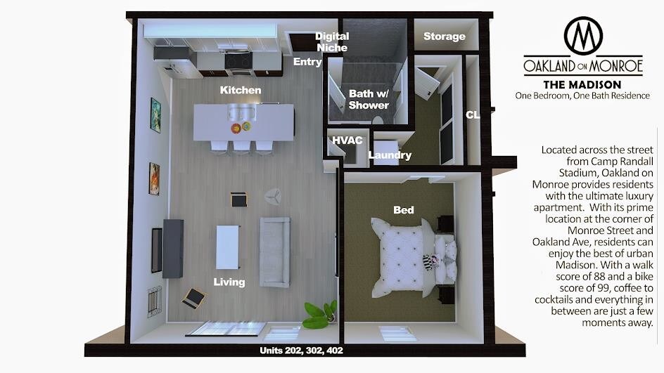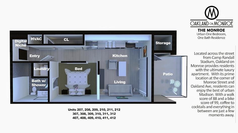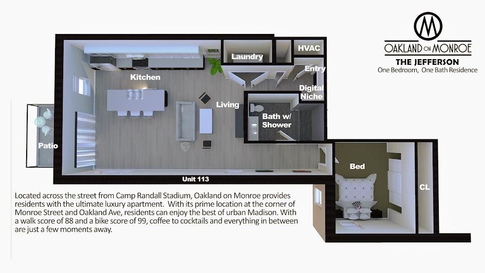 Madison’s premier location, next to Camp Randall and minutes from downtown. Surrounded by outstanding Vila's and Regent neighborhoods. Walk to many restaurants, bars, the Kohl Center, parks and lakes. Two blocks from Trader Joe’s, on the city bike path and bus line. Located adjacent to the new Crazy Legs park.