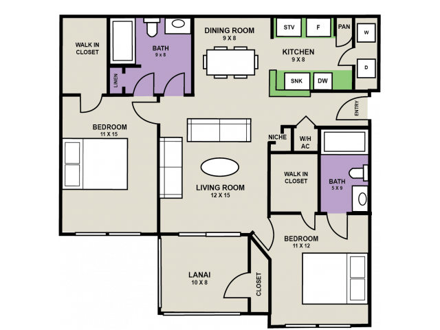 Apartment Model: The HeronFrom $1,2991 Bedroom, 1 Bath, 756 sq ftAvailable Now![]()