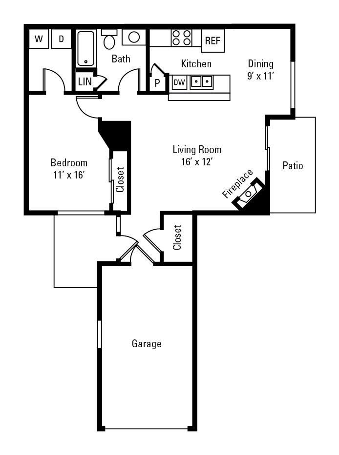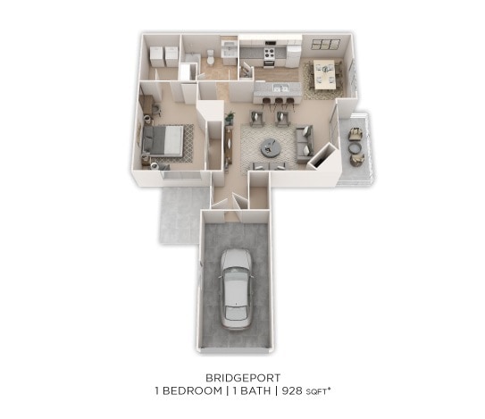 Apartment Model: Bridgeport w/ Garage - Upper LevelFrom $2,0101 Bedroom, 1 Bath, 928 sq ftAvailable Now![]()