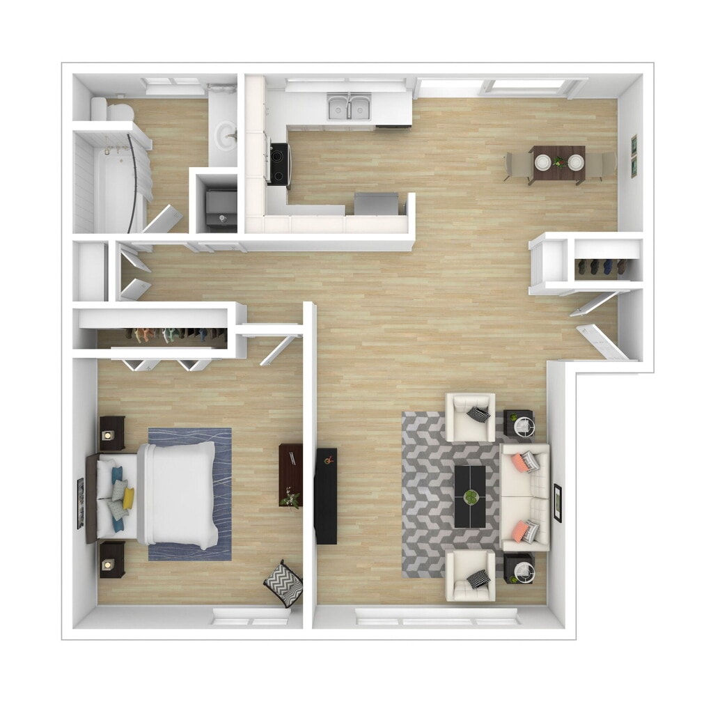 1 Bed, 1 Bath, 734 sq ftAvailable NowModel Gallery