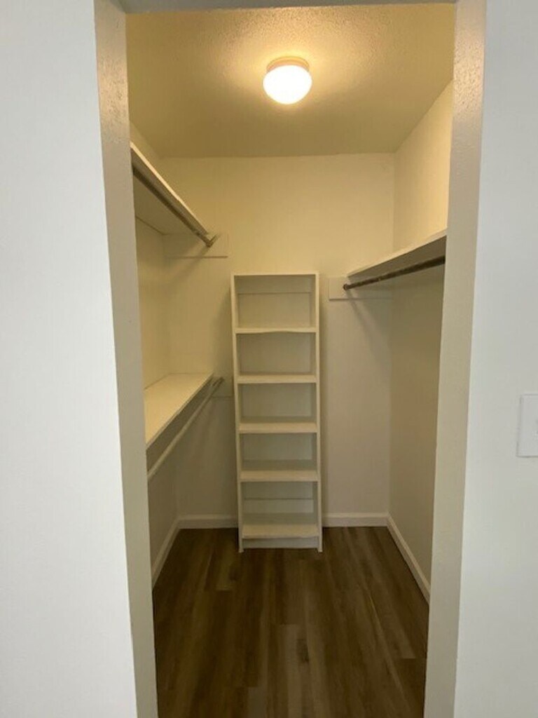 - Unit Description- You’re no regular Joe? You want something with a little more oomph? You got it. This large one bedroom floorplan is chocked full of interesting details; archways leading to the living area from the foyer (which by the way, has a huge built in shelving unit, perfect for displaying your vintage hardback books), and beams across the ceiling of the living area to create a little more visual interest. Coming in just under 800 sq. ft., this large one bedroom can accommodate your entire Art Nouveau mirror collection. Let’s not forget the above average storage closet off of the back patio or balcony. Now you can get all of your holiday décor boxes out of your friend’s garage. I’m sure they’ll appreciate it. - Model Rent and Fees- Price- $1,529