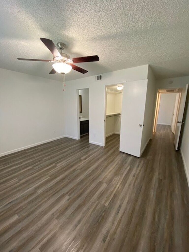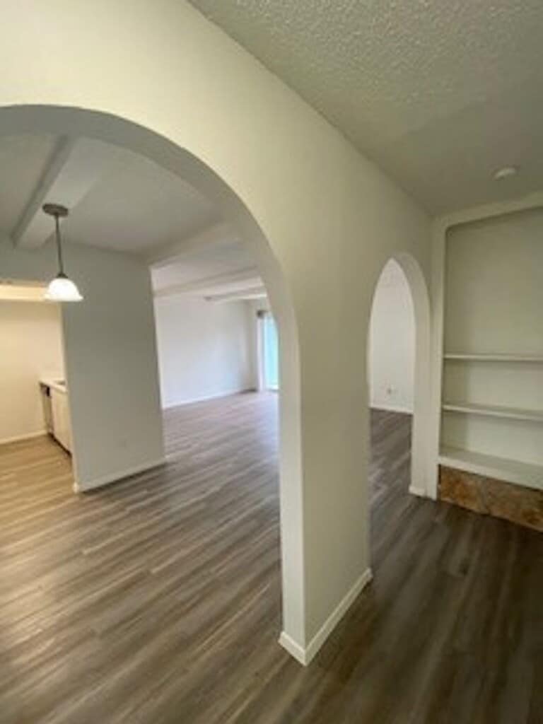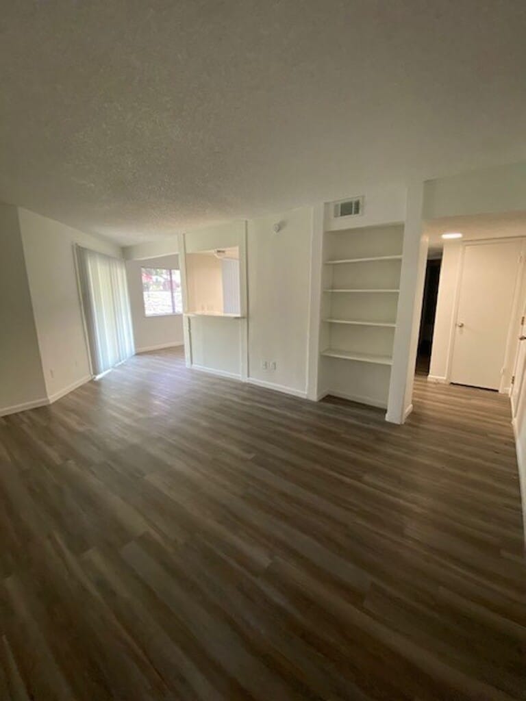 - Unit Description- Our largest apartment home, boasts a beautiful layout with large living space, built in bookshelves, 2 bedrooms and 1.5 half baths. Check out the cute kitchen nook, perfect for those morning coffees as you gaze out your sliding glass door! Separate dining space, great separating that dinner space from game night. Enjoy the luxuries of this unique property with it's amazing Oak Trees, pet friendly living with dog wash station, sparkling pool and MORE! - Model Rent and Fees- Price- $1,895