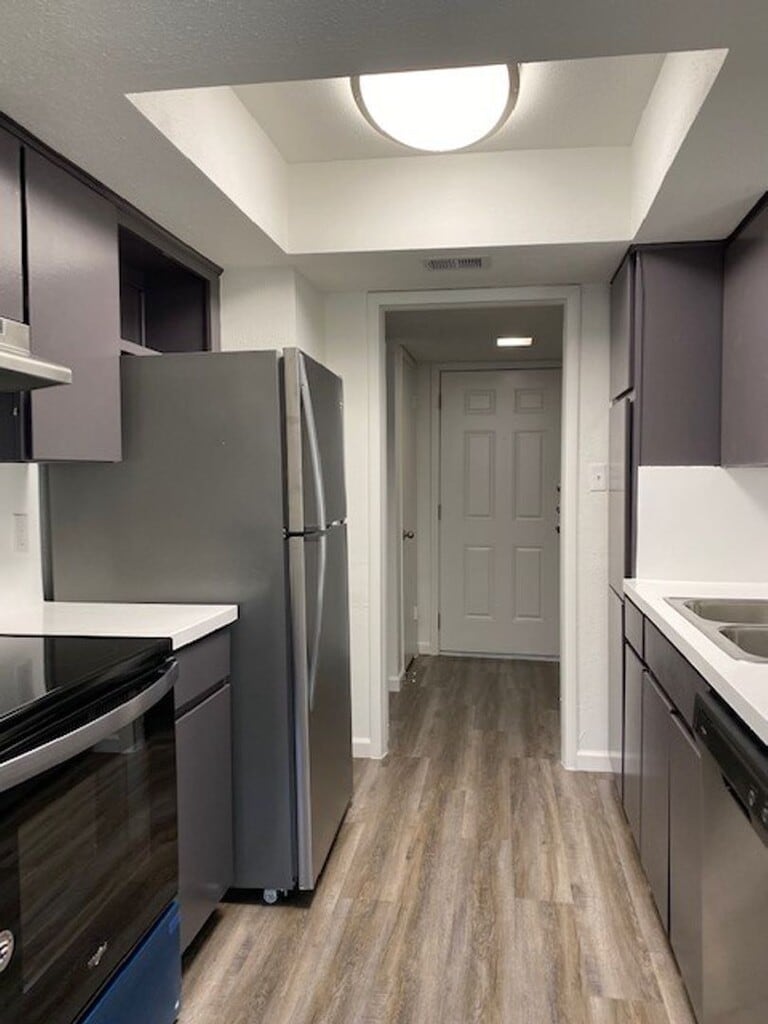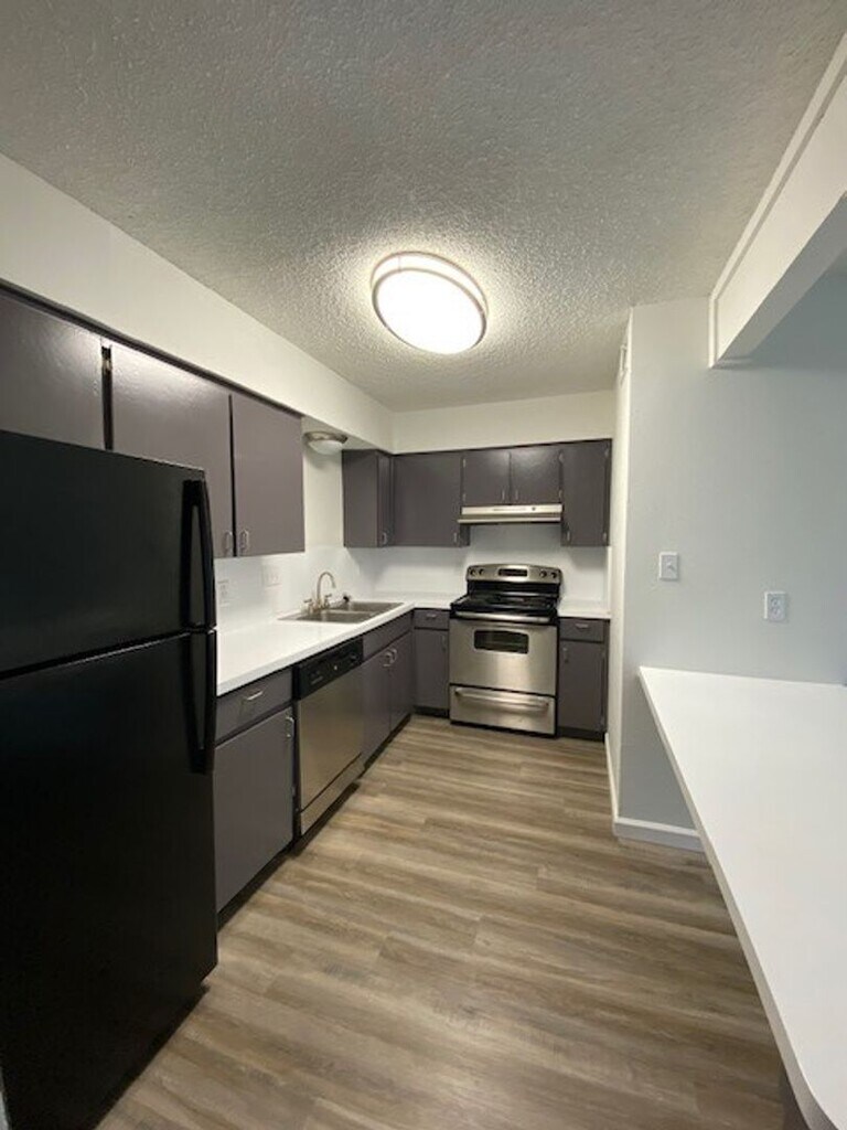 - Unit Description- This apartment is well thought out and equipped with many features that make living in an apartment easy and fun. You’ll find a spacious kitchen in this floor plan that includes a quaint open-shelf pantry and spice rack, as well as a large, built-in, table-height bar, that can accommodate up to 5 people! Who said you can’t throw a dinner party in 523 sq ft? The bathroom has enough counter space to accommodate all of your beard grooming essentials, or your extensive serum collection, AND has a vanity built to accommodate a chair, so you can sit while you admire your beauty. What luxury! Let’s not forget about the large walk in closet which includes a standing 5 shelf storage area for all of your non-hanging items. Feel free to donate that old dresser you’ve been hanging onto. You know, the one with the missing knobs. Or, keep it for emotional value if you want. We are not here to tell you what to do! - Model Rent and Fees- Price- $1,259
