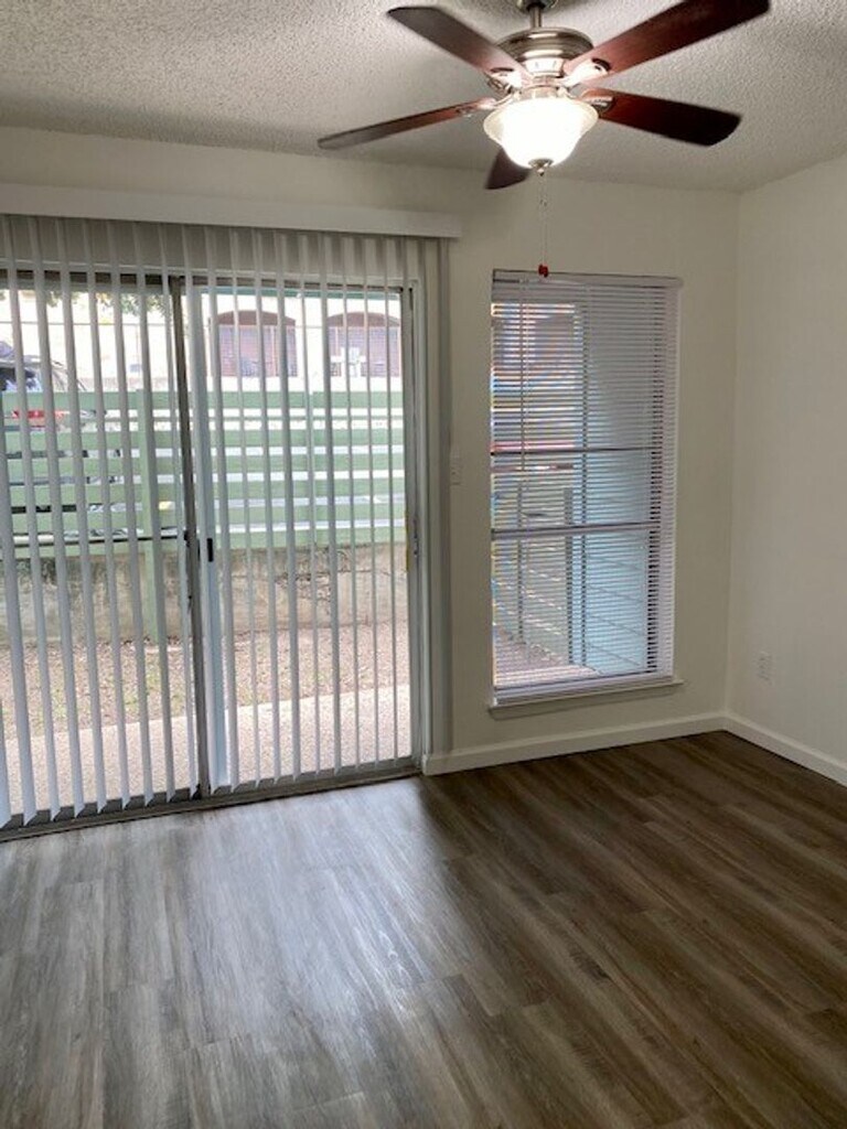 - Unit Description- Our largest apartment home, boasts a beautiful layout with large living space, built in bookshelves, 2 bedrooms and 1.5 half baths. Check out the cute kitchen nook, perfect for those morning coffees as you gaze out your sliding glass door! Separate dining space, great separating that dinner space from game night. Enjoy the luxuries of this unique property with it's amazing Oak Trees, pet friendly living with dog wash station, sparkling pool and MORE! - Model Rent and Fees- Price- $1,795