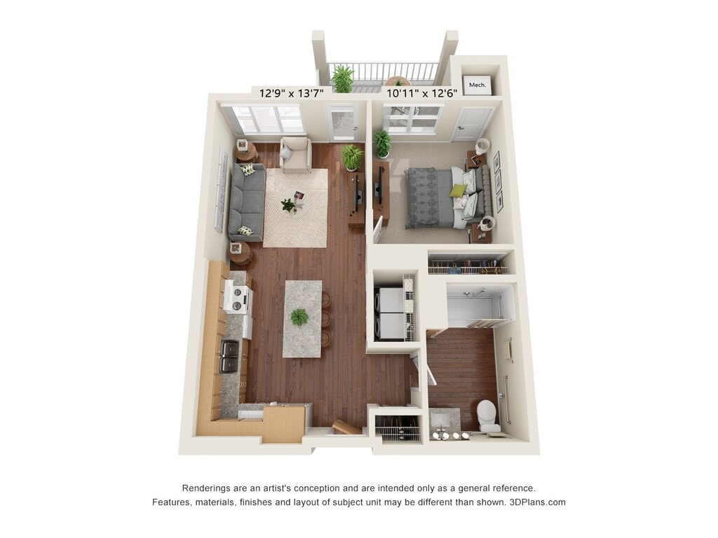 One Bedroom 1C - Floorplan 1 Floor plans are artist's rendering. All dimensions are approximate. Actual product and specifications may vary in dimension or detail. Not all features are available in every rental home. Please see a representative for details.