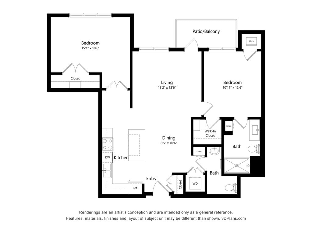 Apartment Model: One Bedroom 1BFrom $1,3701 Bedroom, 1 Bath, 723 sq ftAvailable Now![]()