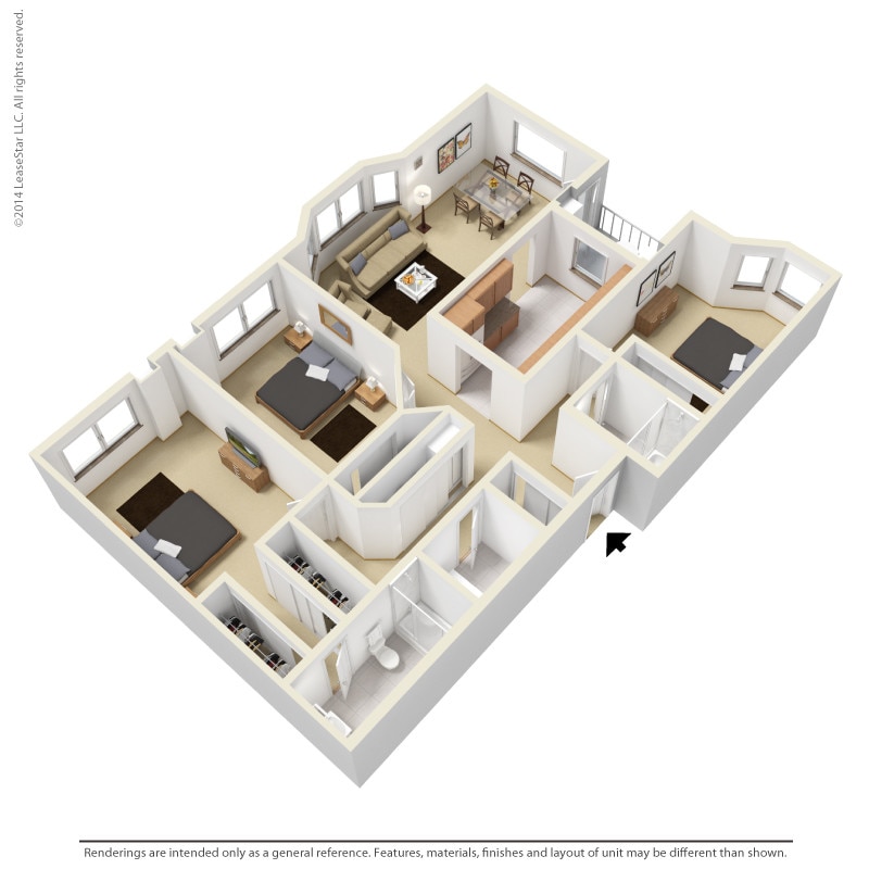 Oaks Lincoln Apartments offers Studio to 3 Bedroom apartments having 402–1,519 sqft. Here is the current pricing and availability: