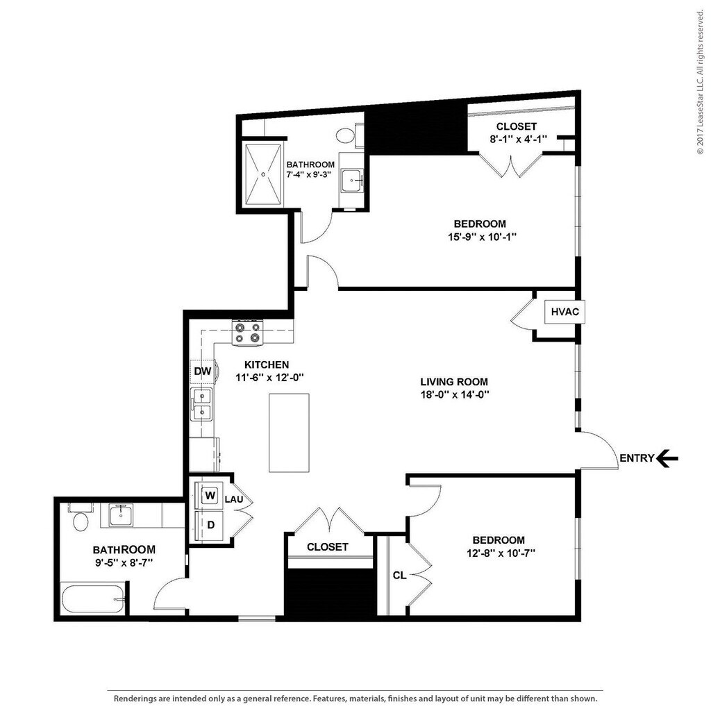 1 Bedroom - A2 - Floorplan 2 ![]()
